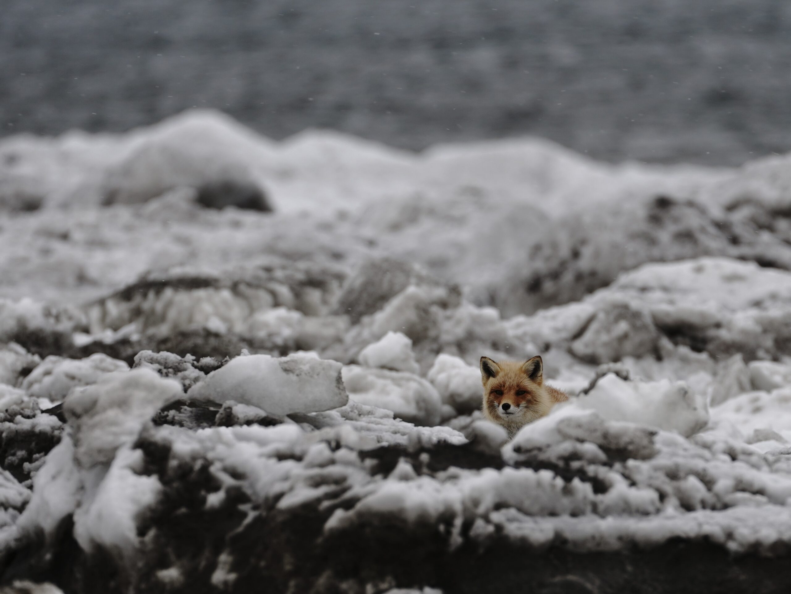 糧を探し歩くキタキツネの姿