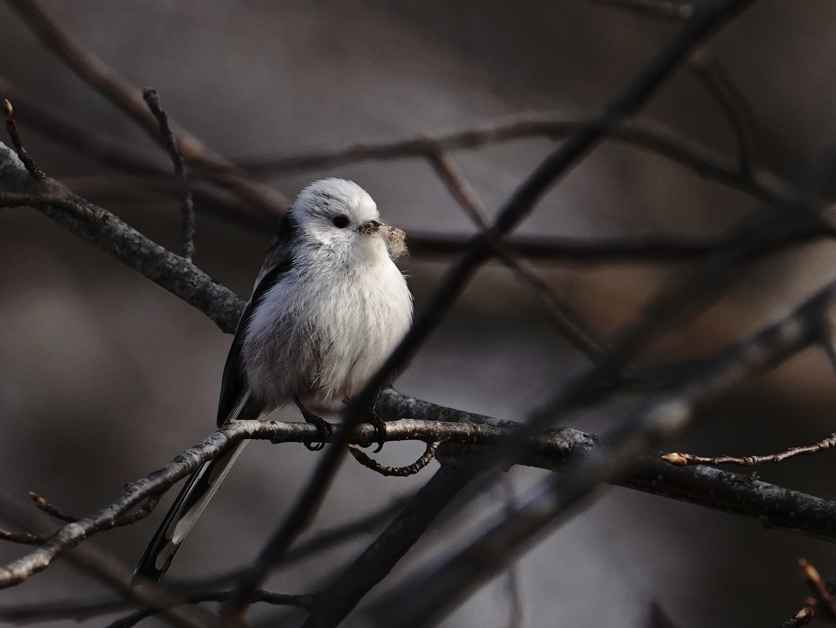 巣材を一生懸命に集めるシマエナガ