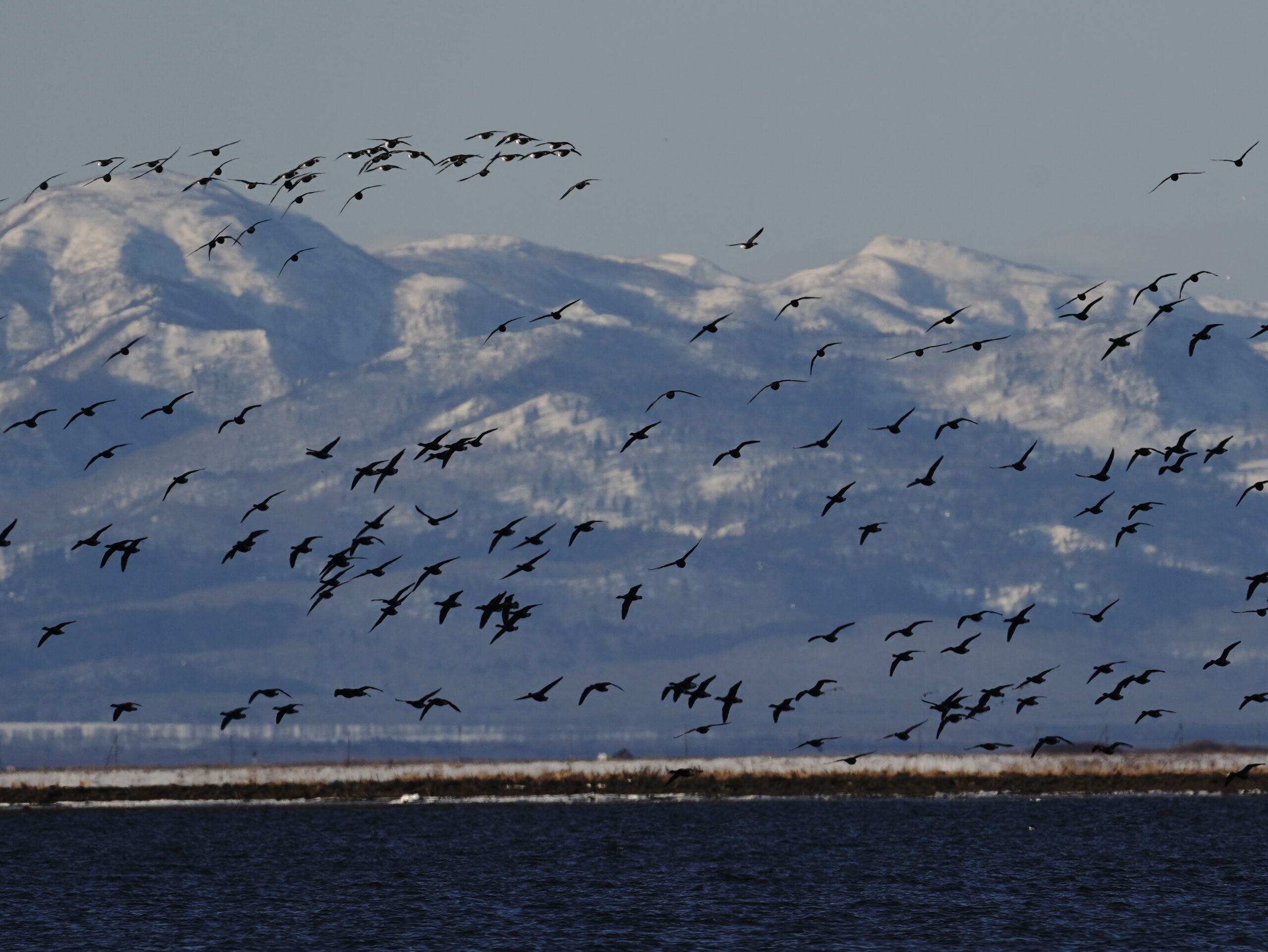 こんなにいたのかというほど うねるように群れは飛ぶ