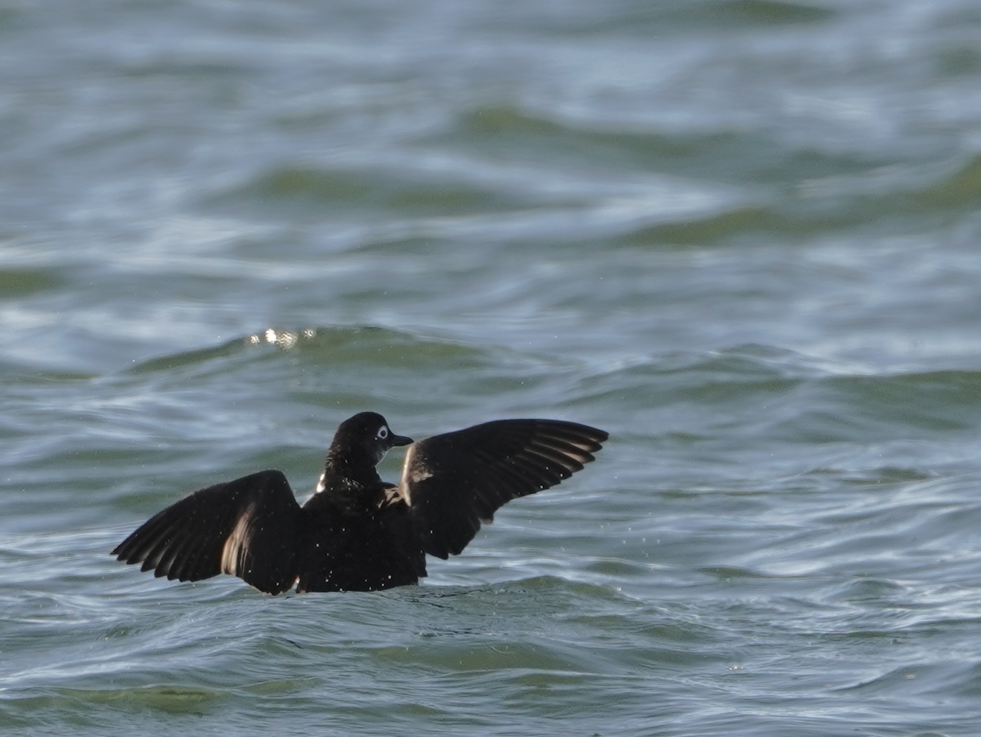 白波立つ海峡を離れ 穏やかな港内で羽繕い