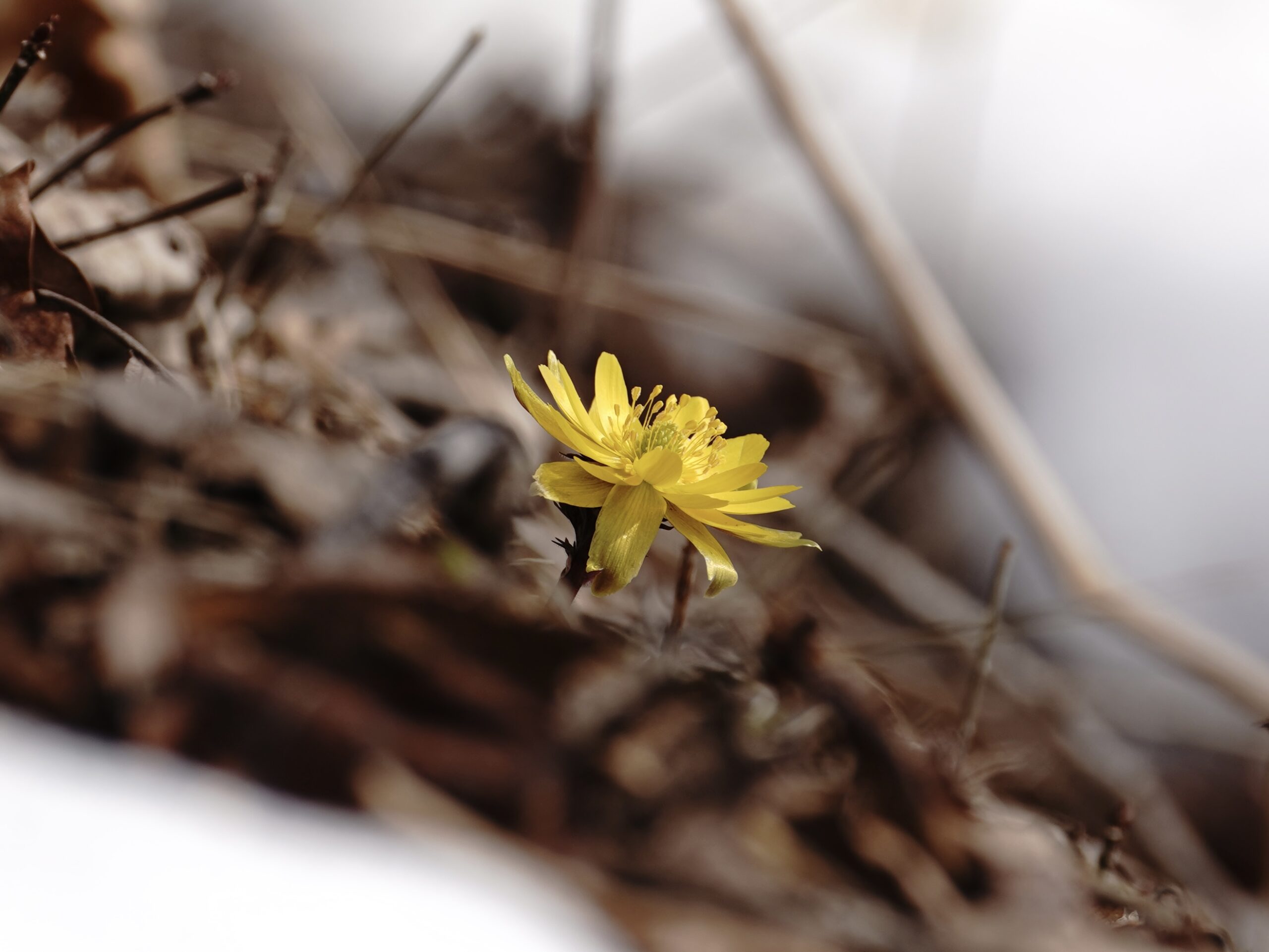 南向きの斜面に 福寿草が咲いた
