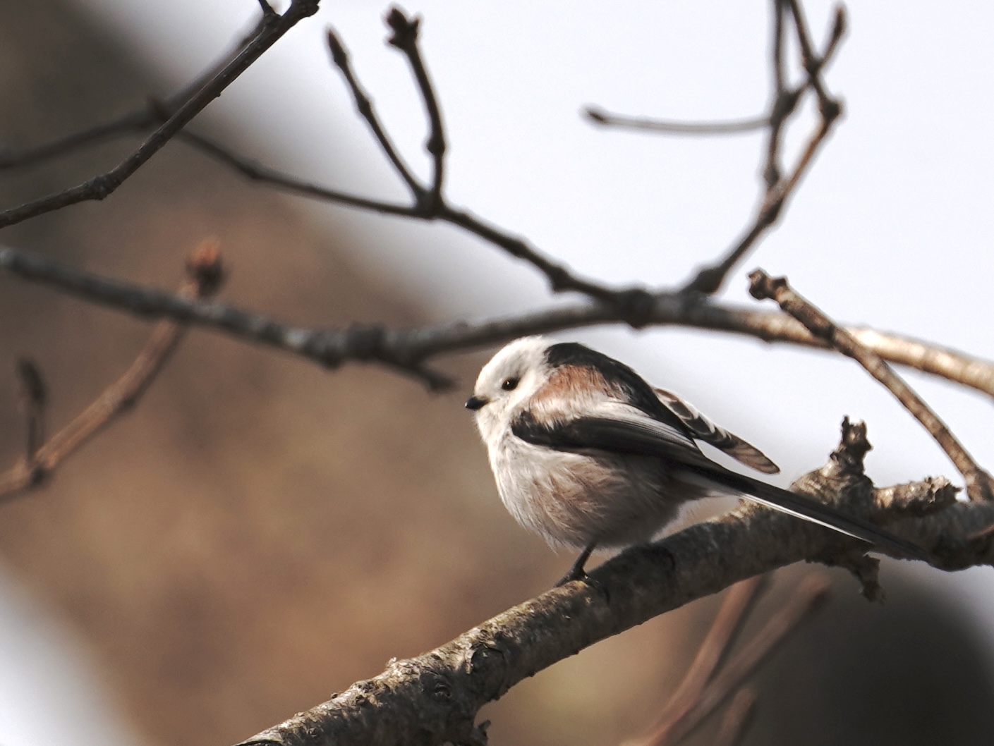 太平洋を望むチャシ跡で 出会ったシマエナガ