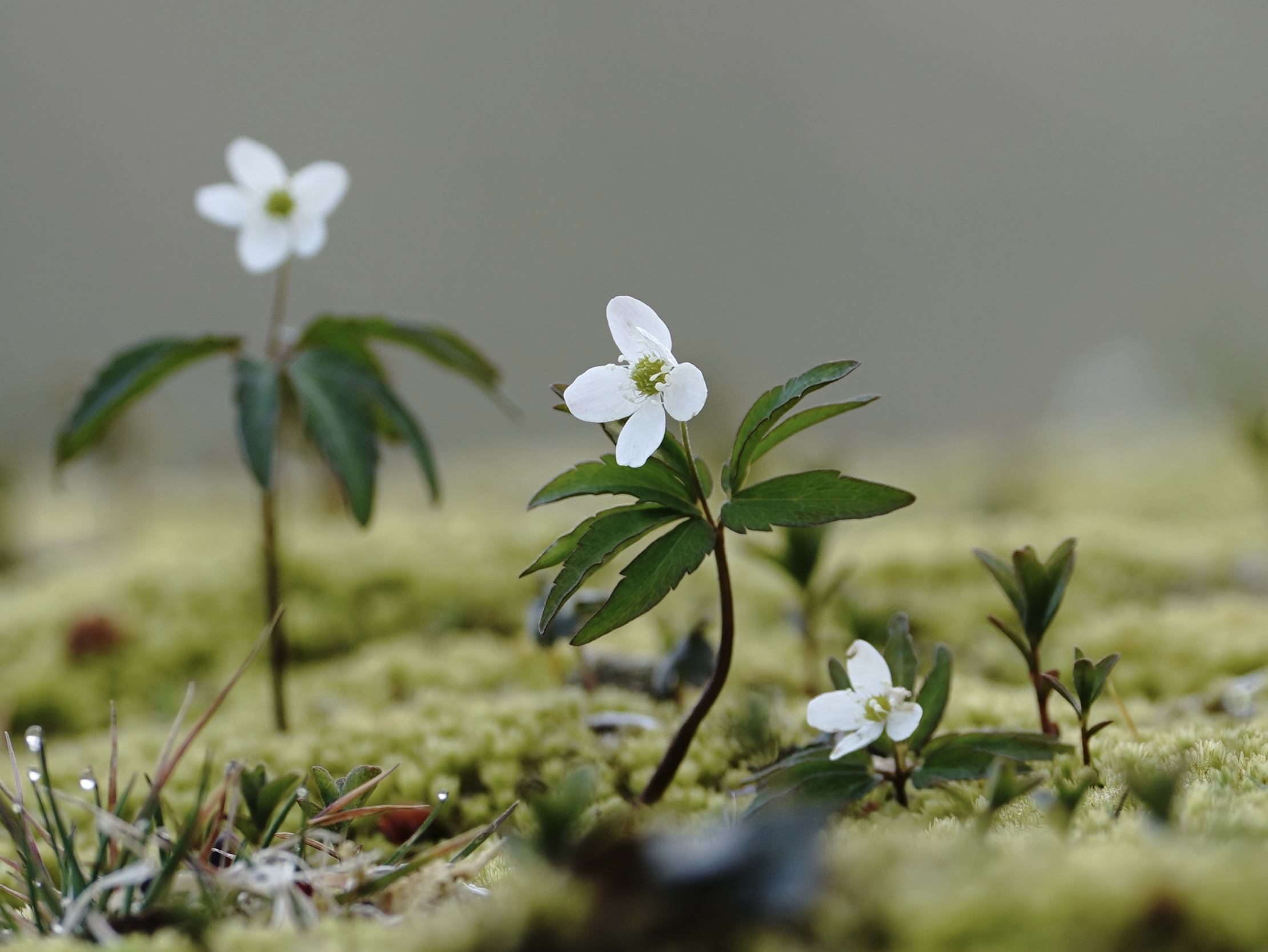 ヒメイチゲの花が咲いた 白い小さな花が咲いた