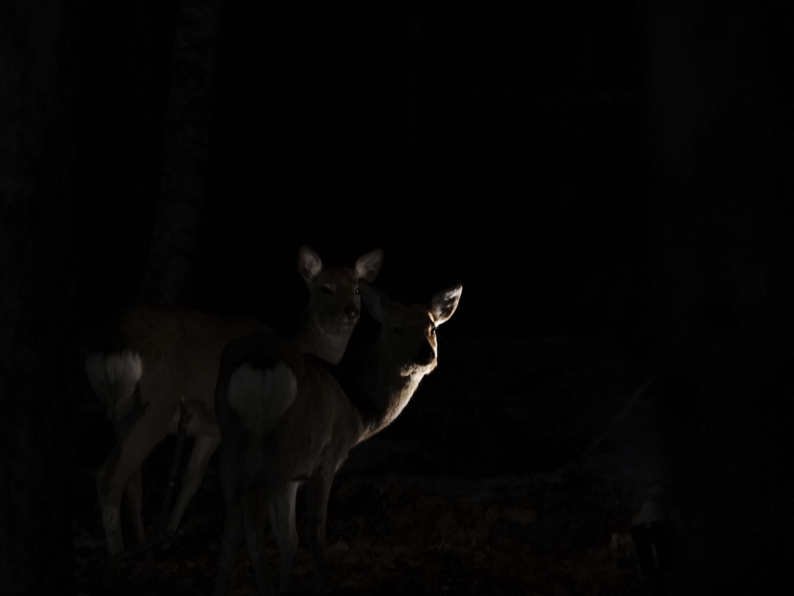 灯に姿が浮かぶエゾシカ